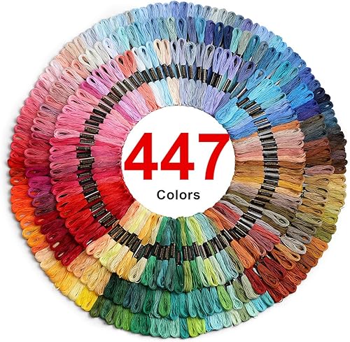 Adkwse Fils à Broderie 447 Couleurs - Kit de Broderie Brésilien pour Point de Croix, Tricotage et Bracelets - Accessoires et Outils Inclus - 8m