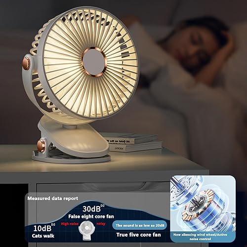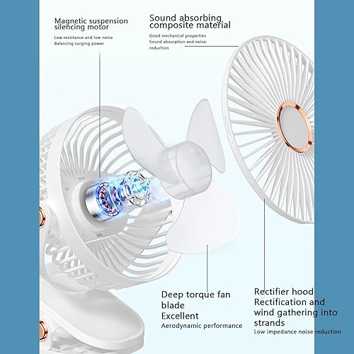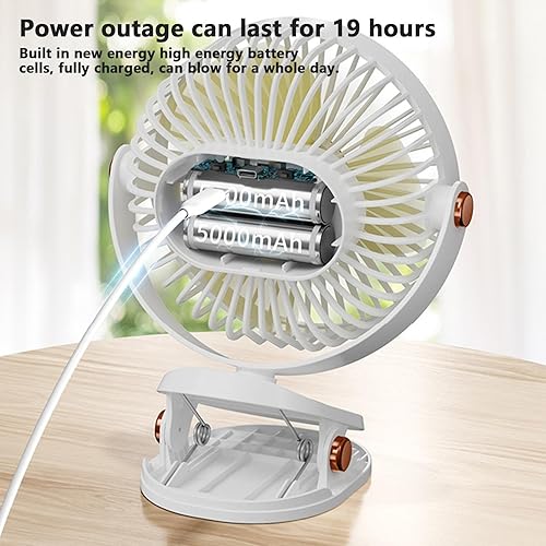 Geruwam Ventilateur à, Ventilateur alimenté par USB avec 5 Vitesses réglables - Petit Bureau Rotatif à 360 ° à Faible Bruit, Bureau à Pince Robuste