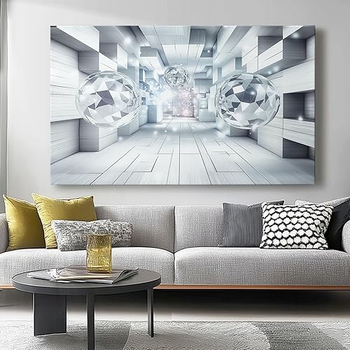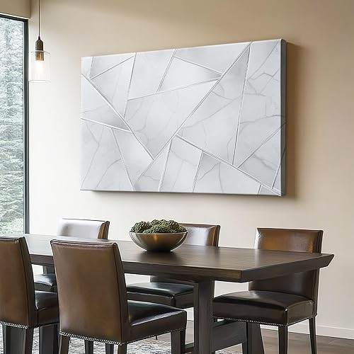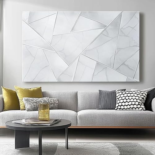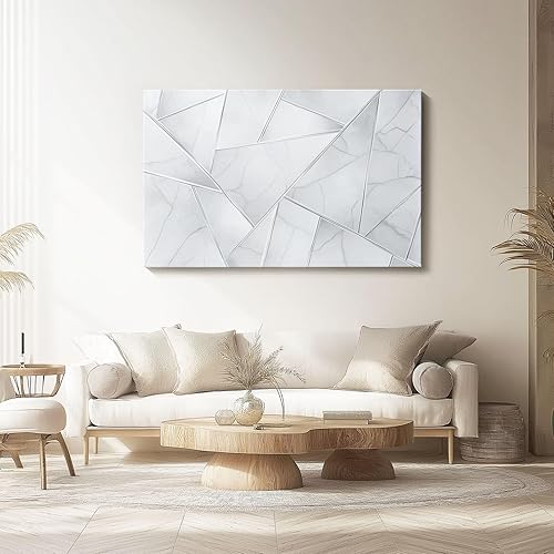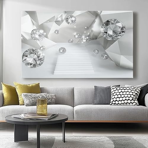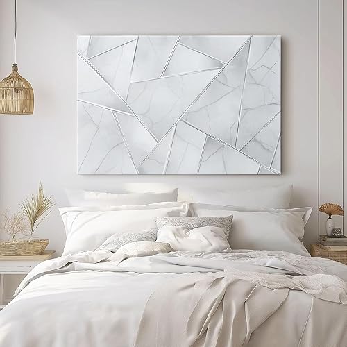 Impression sur toile 70L x50l cm decoration chambre -tableau decoration murale Géométrie Diamant Style Abstrait decoration maison - Tableau Moderne - toile peinture Blanc argenté