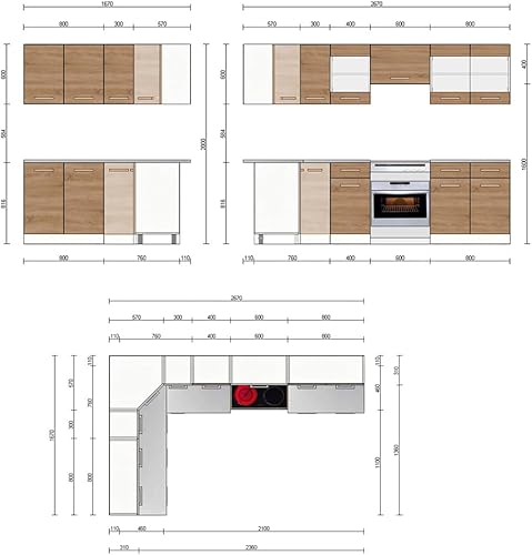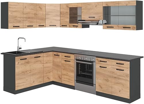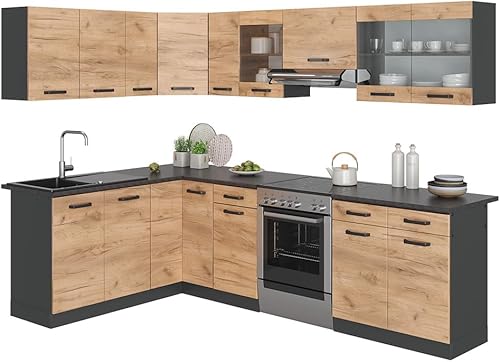 Vicco Cuisine en Angle Rick, Chêne doré/Anthracite, 167x60cm, PT À Motifs Noirs