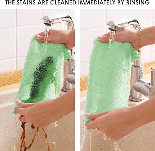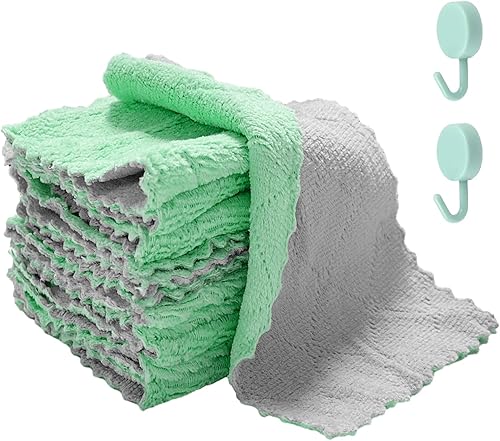 MAXQUU Lot de 12 Torchons en Velours Corail Avec 2 Crochets - Chiffon de Nettoyage en Microfibre, Éponge à Récurer Bicolore - Multi-Usages pour Cuisine et Ménage
