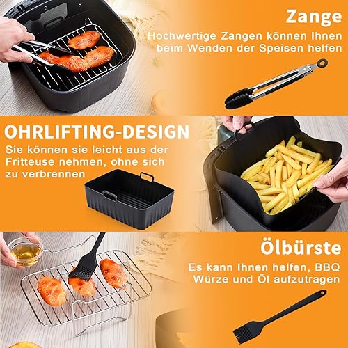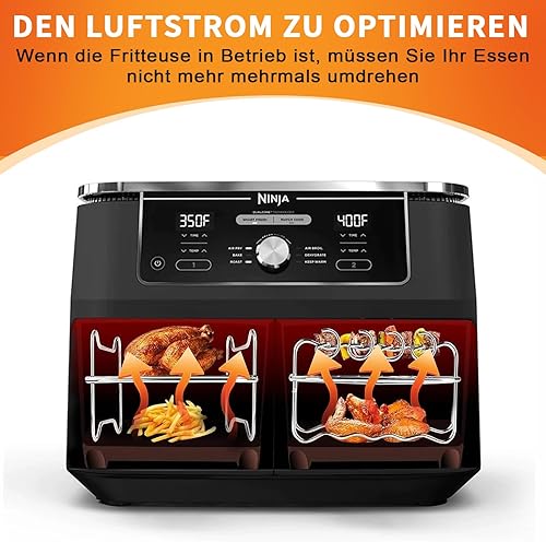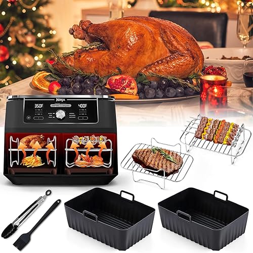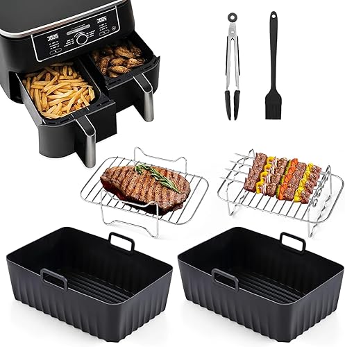 Kit d'accessoires Airfryer pour Ninja Foodi AF300EU AF400EU, Hunnycook 10 accessoires Airfryer pour Airfryer Ninja Dual Airfryer de 7,6 à 9,5 l, avec moule en silicone, racks et outils