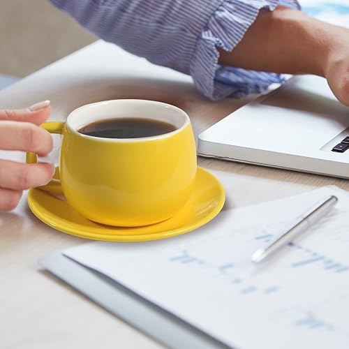 ionEgg Tasse à café en porcelaine avec soucoupe - 270 ml - Design minimaliste - Parfait pour latte, cappuccino et thé - Jaune