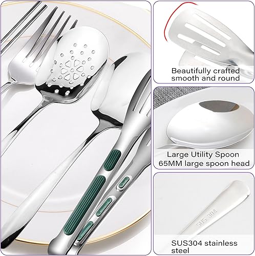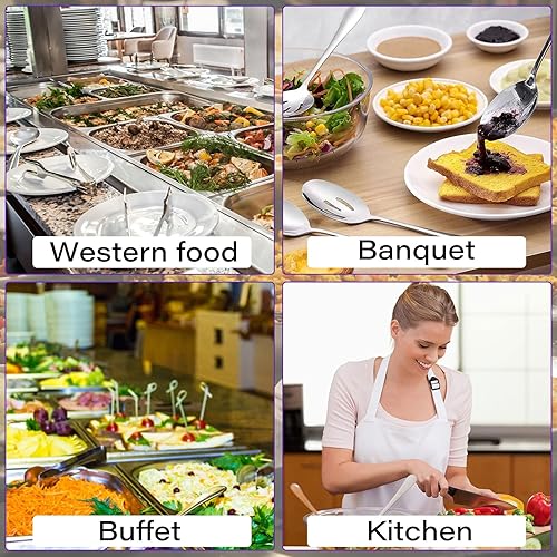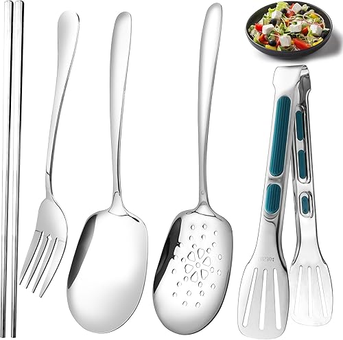 GZLCEU Lot de 5 cuillères de service, en acier inoxydable 304, pour banquet, buffet, restaurant, fête d'hôtel (cuillère, écumoire, fourchette, baguettes, pince alimentaire)