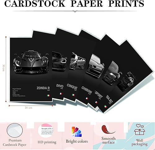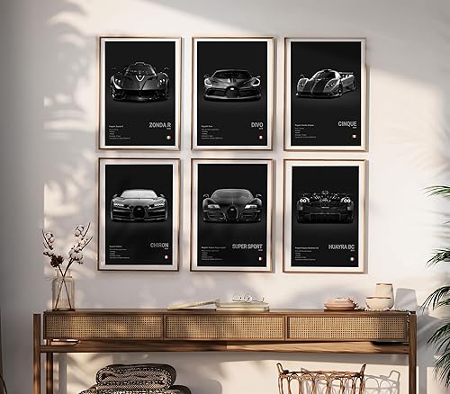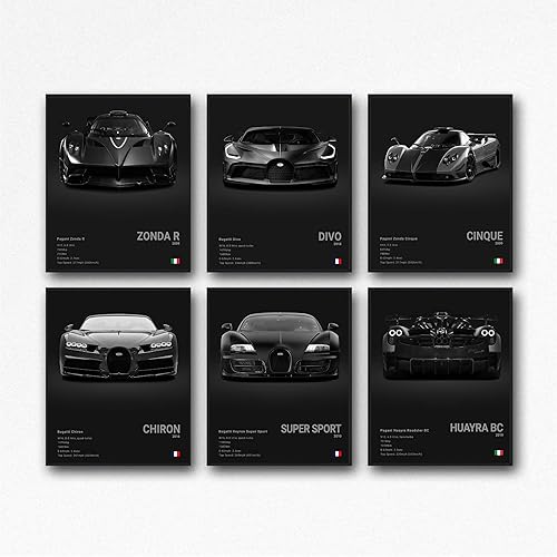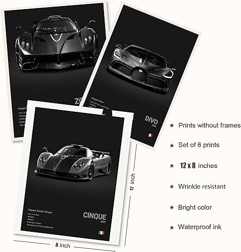 XUPUE Lot de 6 affiches Bugatti Pagani pour murs - Impression artistique de voiture pour chambre de garçon - Sans cadre - 20 x 30 cm