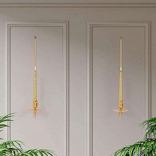 Applique Murale Bougie - Décoration Porte-Bougie | Bougeoir d'art Mural | 2 Appliques Décoratives, Bougeoirs en Métal Doré pour Salon, Mariage