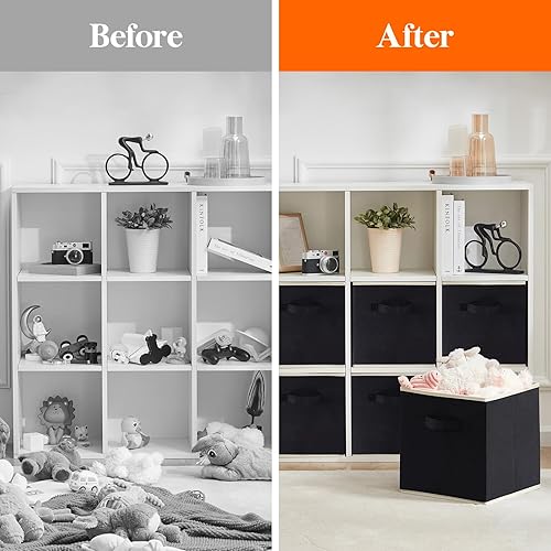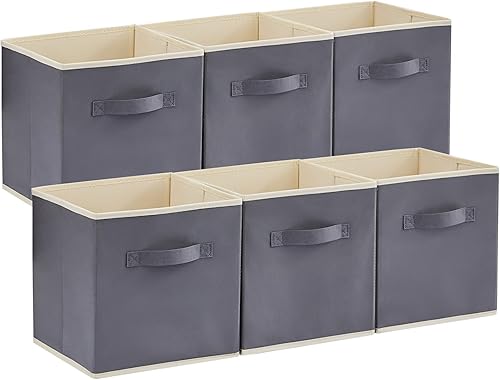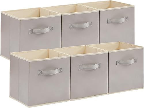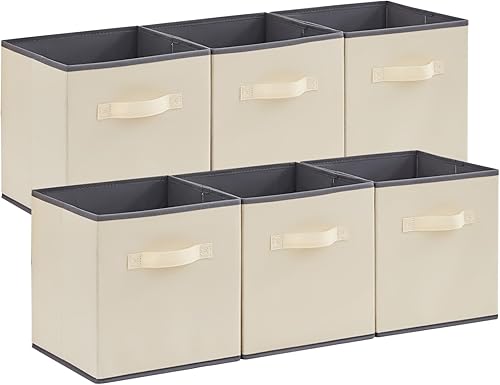 Lifewit Lot de 6 Cubes de Rangement Pliables, Paniers Rangement en Tissu, Caisses Rangement, Boites de Rangement avec Poignées, Organisateurs pour Vetements, Jouets, 30 x 30 x 30 cm, Beige