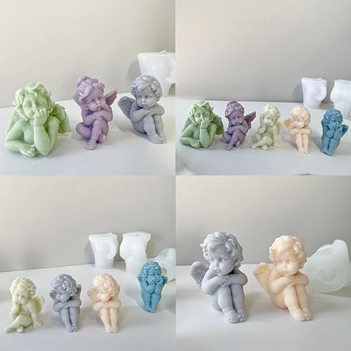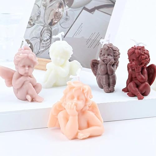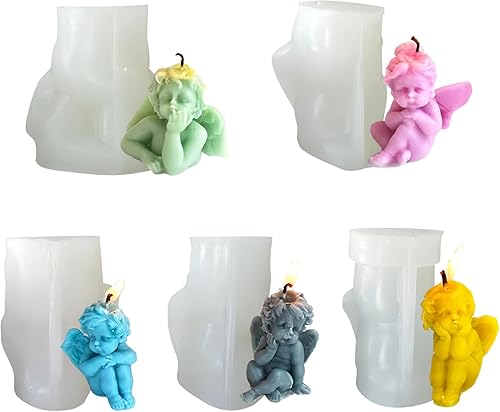 Moules à Bougies 3D en Silicone, 5 Pièces Moule pour Bougies Anges DIY, Moule en Résine Epoxy pour Anges Bougies, Moule à Bougie en Silicone pour Couler Scented Candles, Moules pour Savon Fait Main