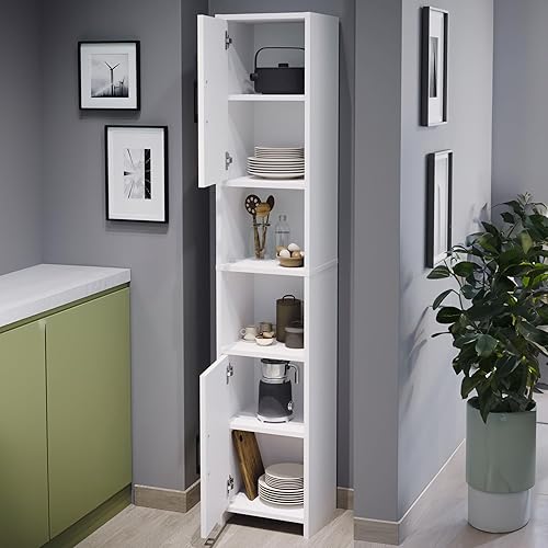 [en.casa] Meuble Colonne de Cuisine Armoire Haute Meuble de Rangement Buffet de Cuisine Placard avec Étagère pour Salle de Bain Salon Salle à Manger Panneau de Particules 180 x 35 x 30 cm Anthracite