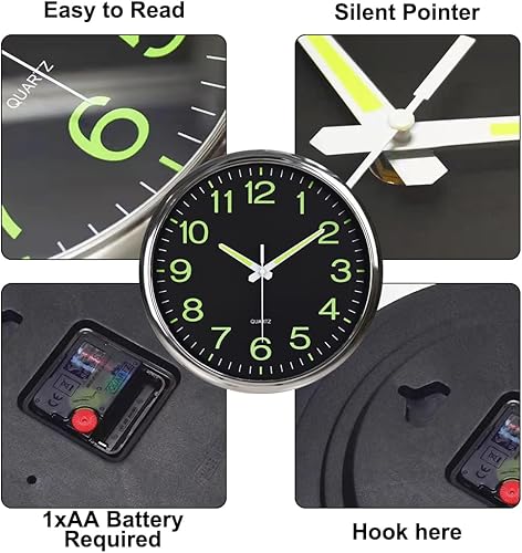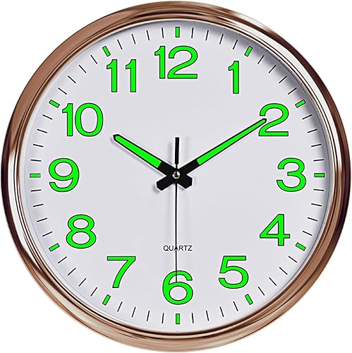 ALEENFOON Horloge Murale Lumineuse 30cm/12, Horloge Murale Silencieuse Alimentée par Piles, Horloge Murale Décorative, Facile à Lire pour Cuisine, Salon, Chambre (Or Rose)