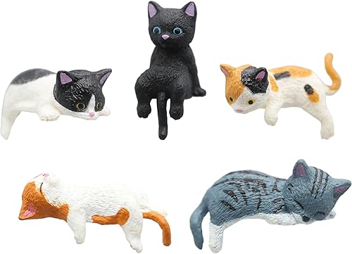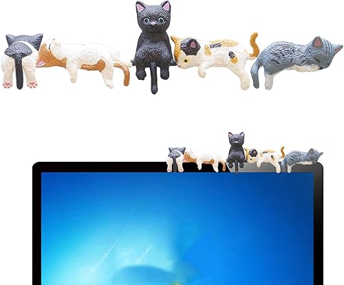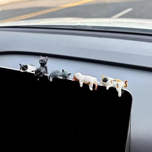 JZLEJC 5pcs Mini Figurines de Chat, décoration réaliste Mignonne de Chat en PVC pour Moniteur d'ordinateur, décoration d'étagère Voiture du Bureau à Domicile