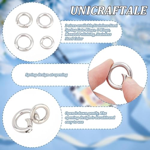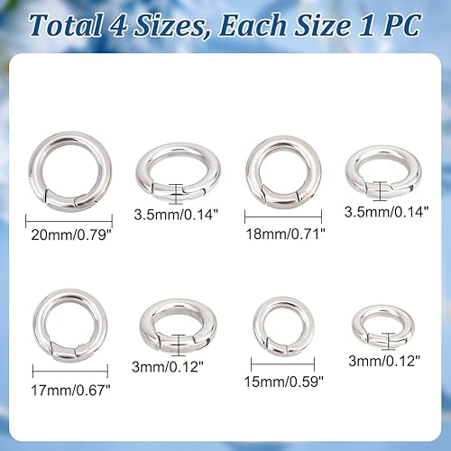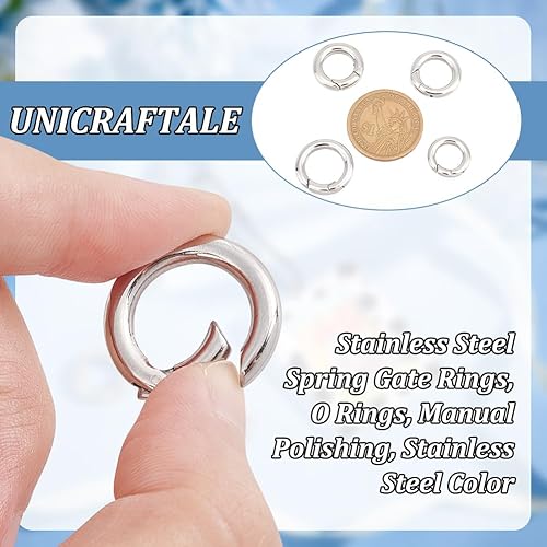 UNICRAFTALE 4pcs 4 Taille Mousqueton Rond Anneaux Porte Clé Mini Anneau Mousqueton Anneaux à Ressorts Crochet à Ressort Acier Inoxydable Décorations De Sacs à Main Rond à Ressort pour Porte-Clés