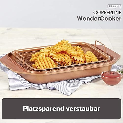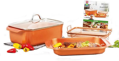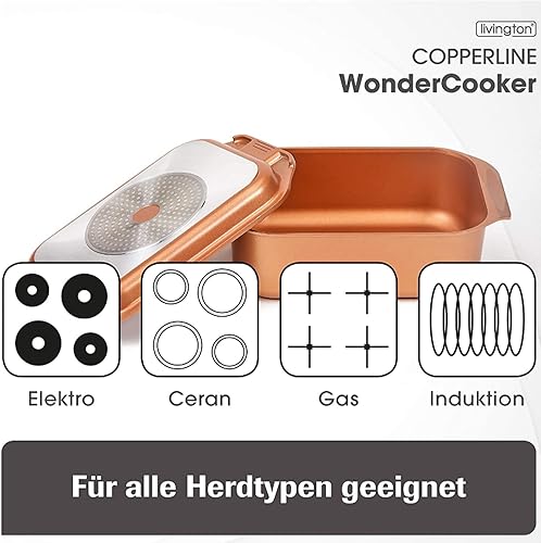 Livington Copperline WonderCooker – 14 en 1 – Plat à cuisson, poêle à gril, cocotte, slow cooker, etc. – Batterie de cuisine tous feux dont induction