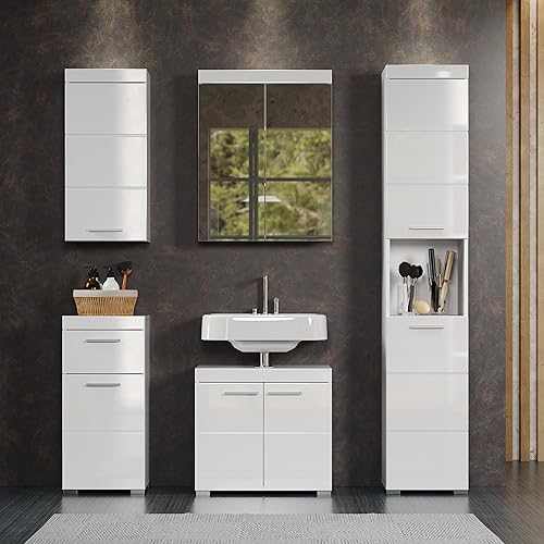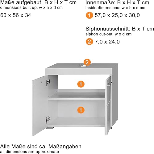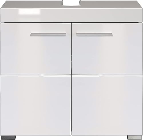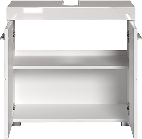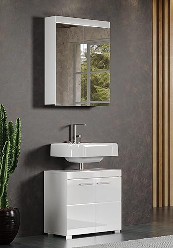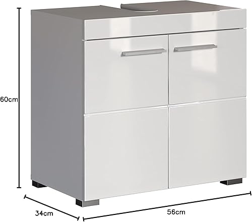trendteam smart living Meuble sous-Vasque pour Salle de Bain Amanda, 60 x 56 x 34 cm en Blanc/Blanc Brillant avec Beaucoup d'Espace de Rangement