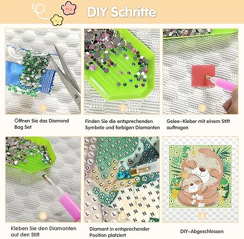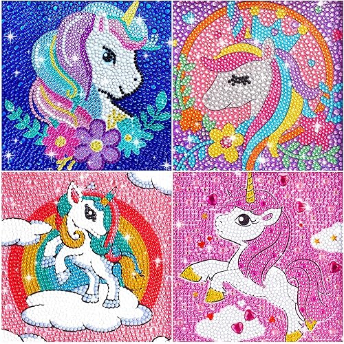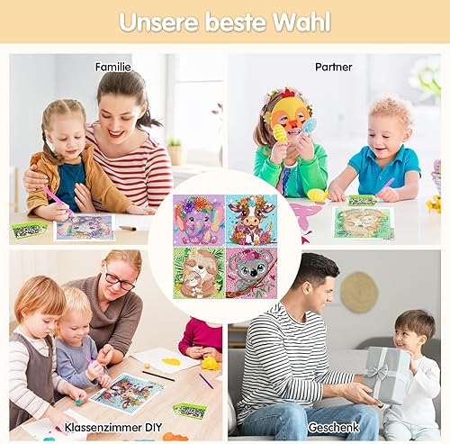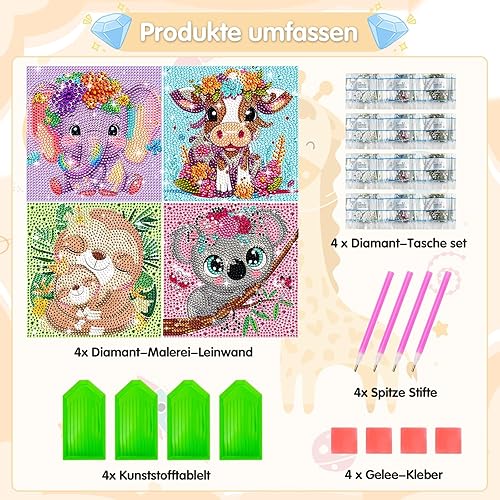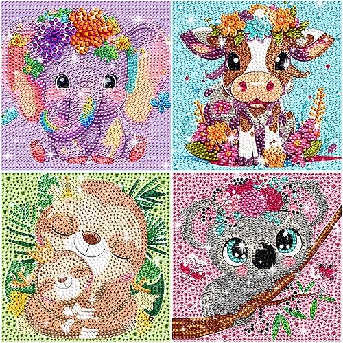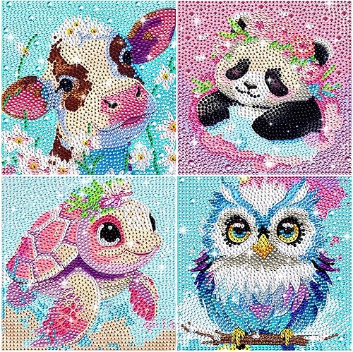 4 Pièces Diamond Painting Kit Enfants, 5D Diamond Painting Kit Complet, Diamant painting arts, 5D Broderie Diamond Peinture Kits,pour la décoration murale à la maison 15x15cm(Animal)