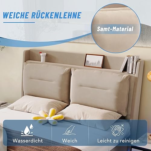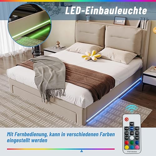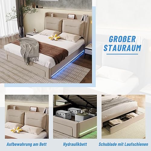 YEHTOKHOME Lit Capitonné avec Barres Lumineuses LED,Double Rembourré Lit Hydraulique avec Tiroirs et Rangement sous Le,Velours(sans Matelas) (Gris foncé, 160 x 200cm)