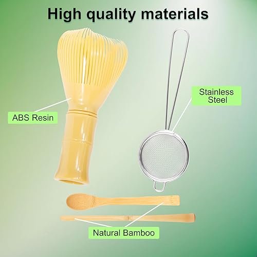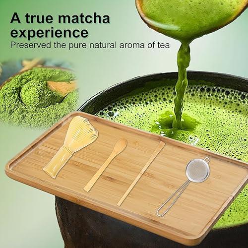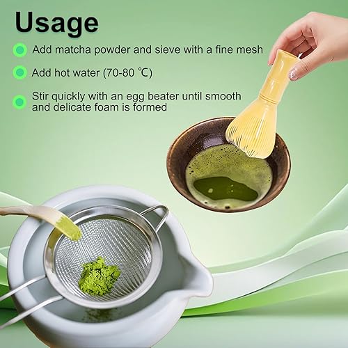 4 Pcs Kit The Matcha Kit Complet: Fouet Matcha Bambou & Cuillere Traditionnelle & Tamis à Matchas & Support de Fouet, pour Cérémonie Du Thé Matchas, Cadeaux pour Débutants et Passionnés