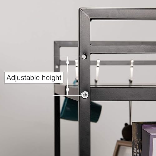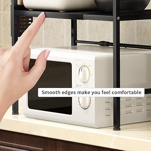 DDMINE Support Extensible Four à Micro-Ondes, Support d'étagère de Cuisine Four à Micro-Ondes, Étagère à Micro-Ondes Extensible avec 3 Niveaux, Acier au Carbone, avec 3 Crochets (3 Niveaux, Noir)