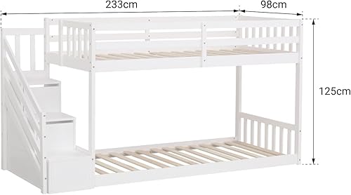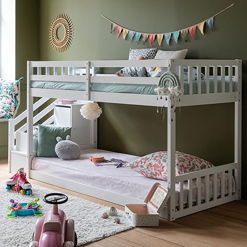 Happy Garden Lits superposés pour Enfants 190x90cm Blanc Célestine, Espace de Rangement intégré