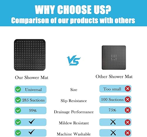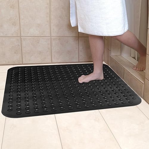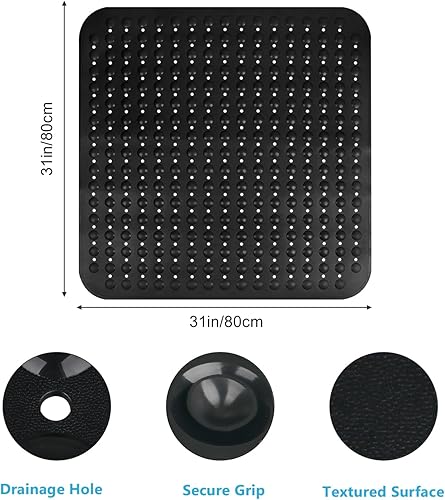 ZOKBOM Tapis de douche antidérapant 80 x 80 cm | Tapis de douche épais carré résistant à la moisissure | Tapis de douche antidérapant sans BPA (noir)