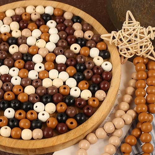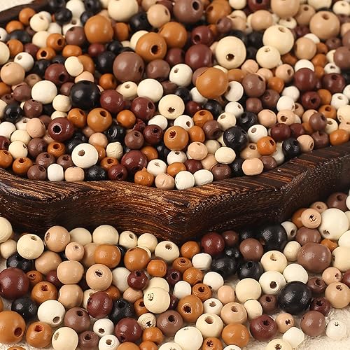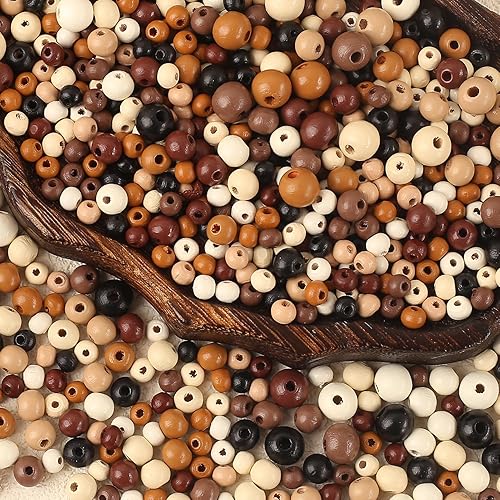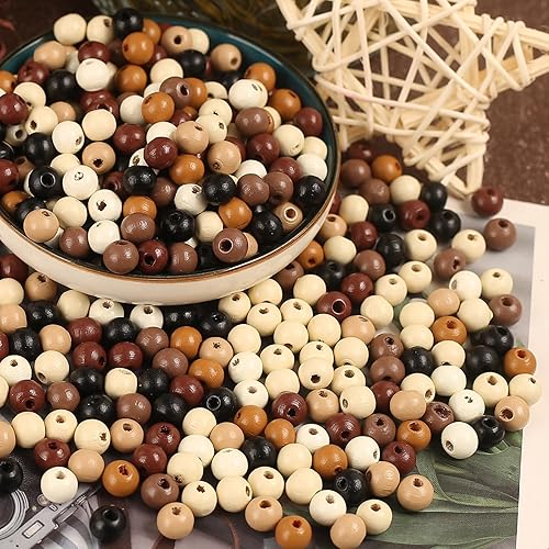 HERZONE Lot de 1000 perles rondes en bois de 8 mm à enfiler pour la fabrication de bijoux (foncé - 8 mm)
