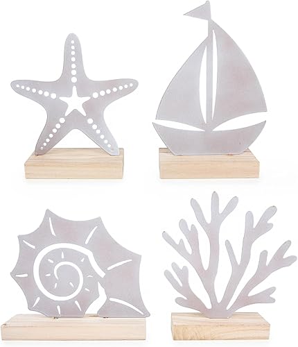 Logbuch-Verlag Kit de décoration maritime en bois et métal – Corail + voilier + étoile de mer + coquillage – Décoration de plage, vacances, salle de bain