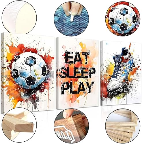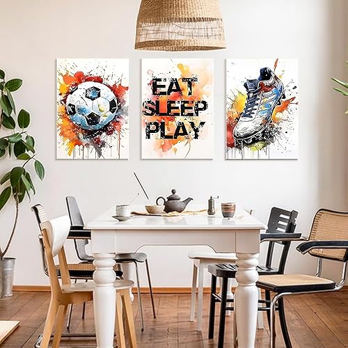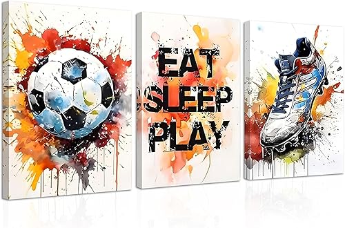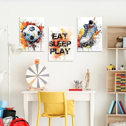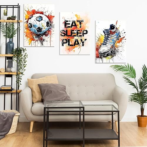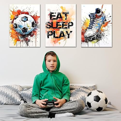 YunBey 3 Pcs Gaming Football Decoration Chambre Ado Garcon Tableau Foot avec Cadre Affiche Toile Mural Football Decoration pour Garçons Chambre Salle de Sport (30 x 40 cm)
