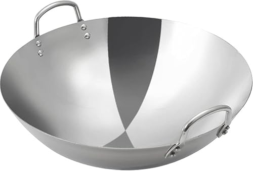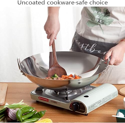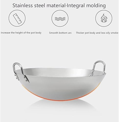 OQHAIR Wok en Acier Inoxydable Non Enduit Wok Commercial Chinois Double Oreille 40cm 47cm Polissage Facile à Nettoyer Non magnétique Augmentation Épaisse Wok Antiadhésif Convient aux Cuis
