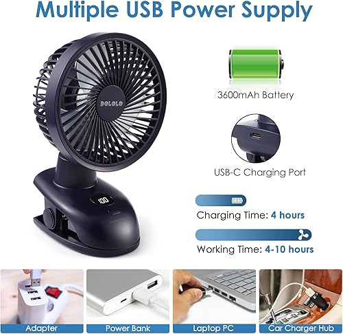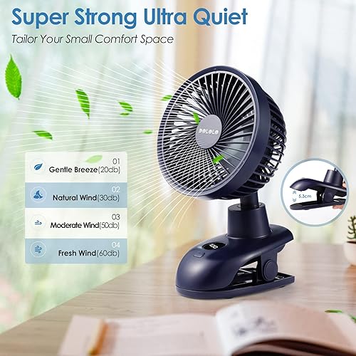 Ventilateur à pince oscillant automatique, ventilateur de bureau USB à 4 vitesses avec affichage de l'électricité, fonctionnement silencieux 3600 mAh, pour la maison, le bureau et le camping