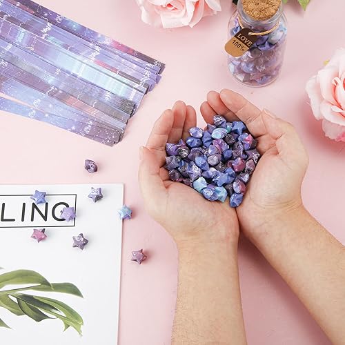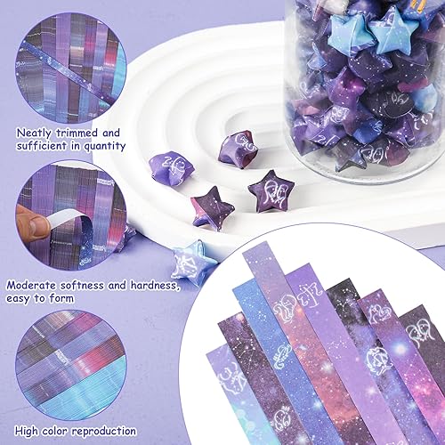 NQEUEPN 540pcs Bandes de Papier Étoiles, 8 Constellations, Papier Origami Étoiles, Réduction du Stress, Fournitures d'Artisanat d'Art Manuel, Violet, Rectangulaire, 22 x 1 cm