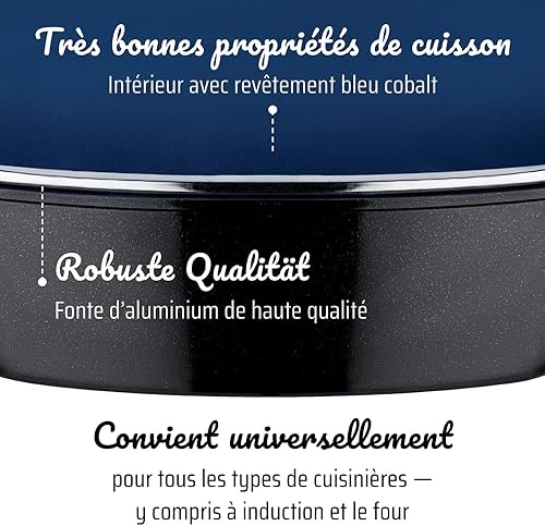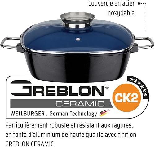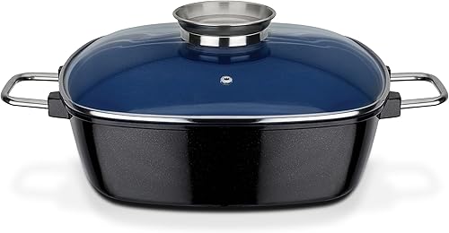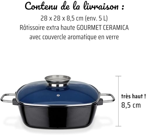 GSW Rôtissoire carrée Ceramica – rôtissoire avec Couvercle, idéale pour mijoter, étuver et rôtir, également pour Induction et Four – Bleu, Fonte d'aluminium, 5 litres