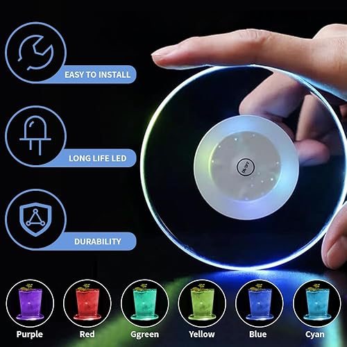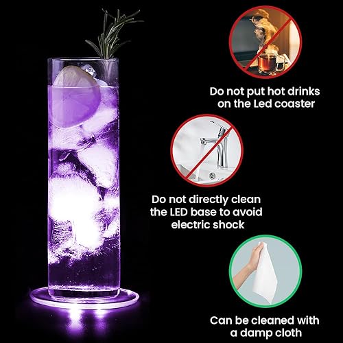 8 Pièces Dessous de Verre Lumineux Coloré, Multicolores LED-sous-Verres, Boutons on/Off Acrylique Rond Faciles à Nettoyer Coaster, pour Fêtes, Mariages, Bars, Noël
