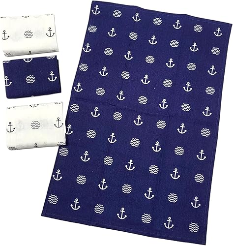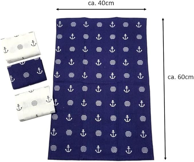 BUSDUGA 4349 Lot de 4 torchons de cuisine style marin 60 x 40 cm 100 % coton Motif ancres et vagues