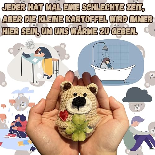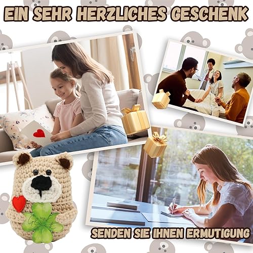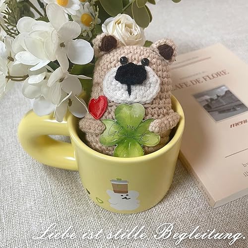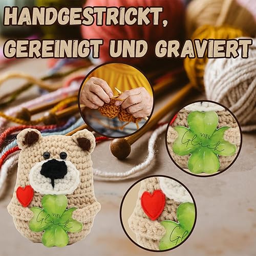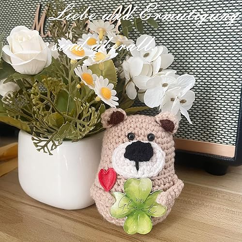 Sugeru Ours porte-bonheur tricoté avec trèfle - Cadeau porte-bonheur et créatif en laine à tricoter - Cadeau de motivation - Bon cadeau de rétablissement - Cadeau d'anniversaire pour la Saint-Valentin