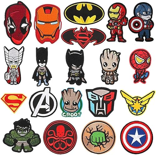 Youery 20 Pieces Ecusson Thermocollant Stickers Tissu Thermocollant Ecusson à Coudre Patches à Repasser Patch Thermocollant Vetement Ecussons Thermocollants pour Vêtement T-Shirt Jeans Veste