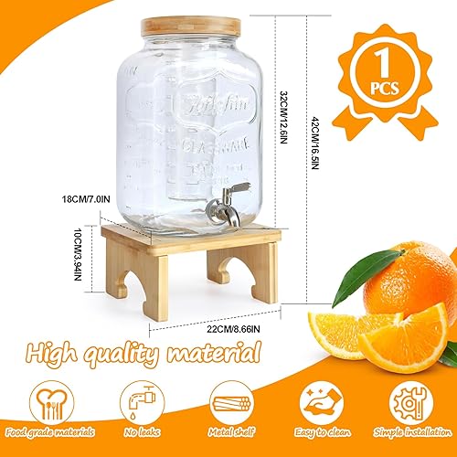 Distributeur de boisson de 7,6 l avec support en verre avec robinet en acier inoxydable massif pour jus glacés, eau, boissons faites maison, fêtes, mariages