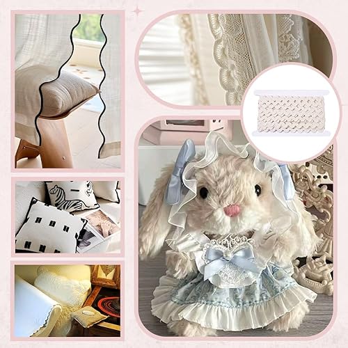 NBEADS 15 Verges Bordure à Franges Courbées, 10mm RIC Rac Ruban de Garniture Zig Zag Tissu Vague Couture Pliage Frange Garniture pour Bricolage Couture Artisanat Emballage Cadeau