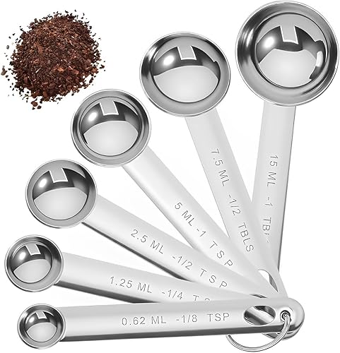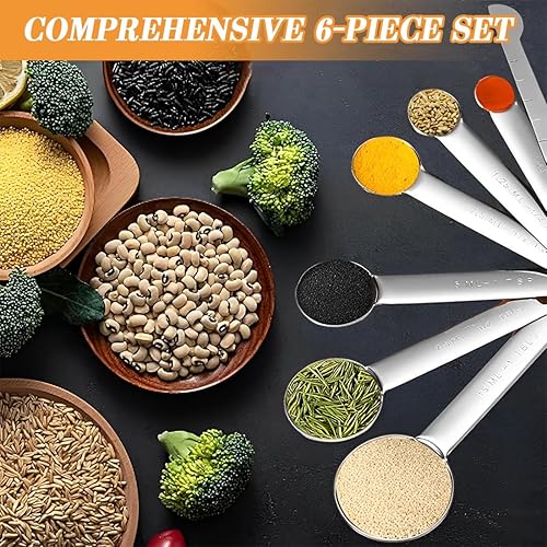 cuillère doseuse,6 pièces inoxydable cuillères à mesurer polies au miroir 1/8 TSP, 1/4 TSP, 1/2 TSP, 1 TSP, 1/2 TBLS et 1 TBLS pour la cuisson