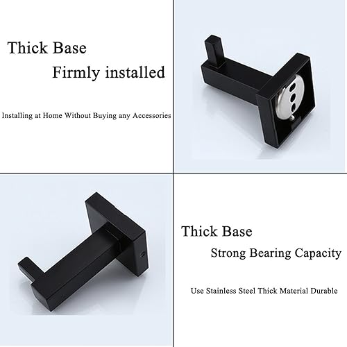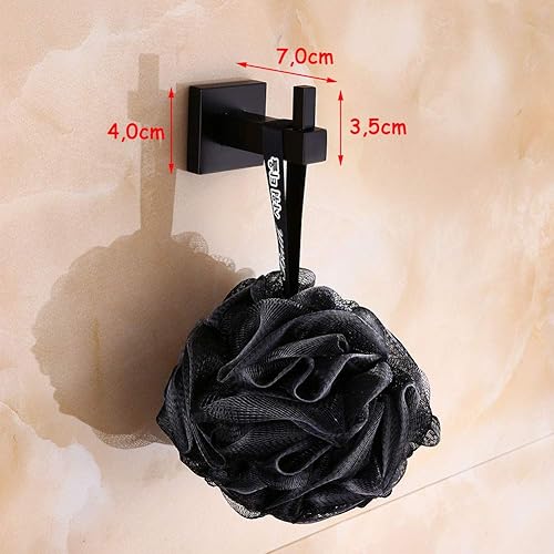 LJLink Crochet mural noir pour serviette de cuisine, Crochet à vêtements de luxe carré de salle de bain, 2 pièces