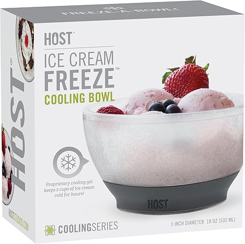 Host - Bol de congélation en Plastique à Double paroi Isotherme pour crème glacée, Accessoire de Cuisine pour Desserts, sauces et céréales, avec Bande en Silicone Confortable, Gris