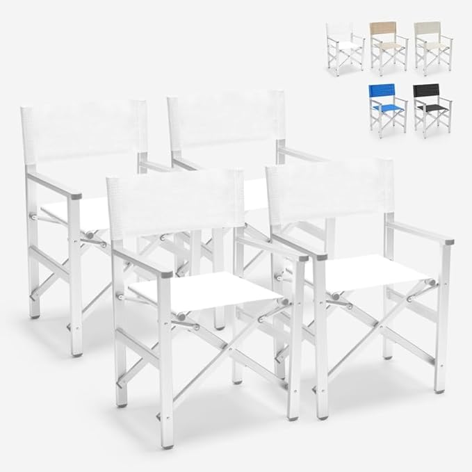Produce Shop Lot de 4 chaises de plage en aluminium textilène, réalisateur en or, blanc
