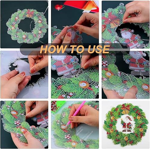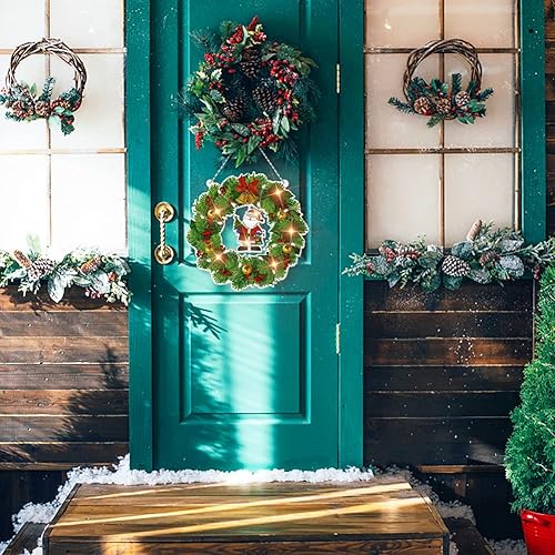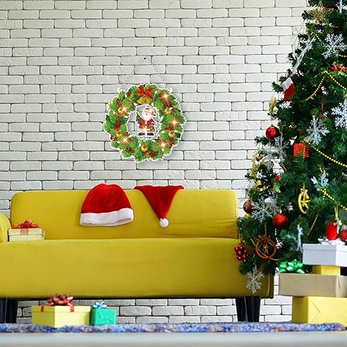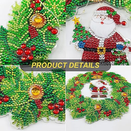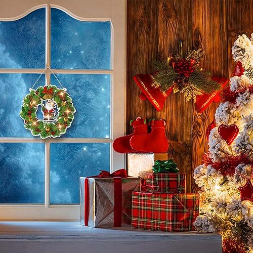 Gukasxi Kit de couronne de peinture diamant 5D avec guirlande lumineuse LED, guirlande de Noël, peinture diamant de Noël, couronne à suspendre, décoration faite à la main, pendentif à suspendre