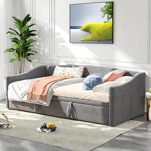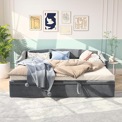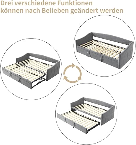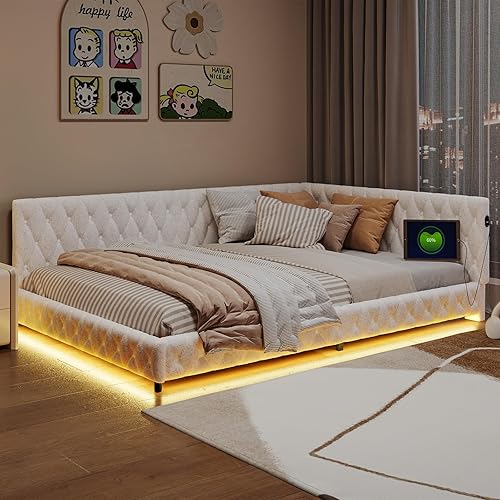 ZHDOKA Canapé-lit rembourré 140x200cm, avec éclairage LED et Port USB, lit de Jour, Multifonction, avec sommier à Lattes, pour Enfants, Adultes, invités, Adolescentes et Filles, Tissu Velours (Beige)