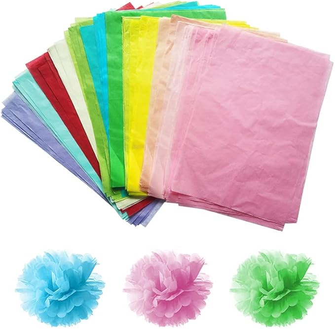 120 Feuilles Papier de Soie Coloré - 12 Couleurs, 21 x 30cm papier d'emballage, Pour créer des pompons, des fleurs en papier, Loisirs Créatifs et Décoration DIY Papier Cadeau