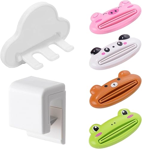 CVDYWDJIE 4 Pièces Presse-Dentifrice, 1 Pièce Porte-Brosse À Dents, 1 Pièce Porte-Dentifrice, Presse-Tube Créatif De Dessin Animé, Presse-Tube Multifonctionnel pour Animaux