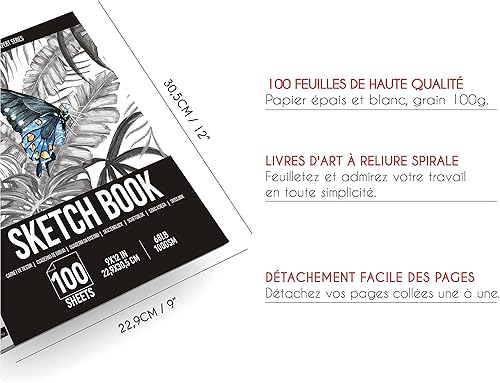 Cahier de Dessin Spirale A4-100 Feuilles Blanches de 100 GSM - Carnet de Dessin avec Couverture Rigide - Carnet Dessin Format A4 (22,9 x 30,5 cm) - Cahier Dessin pour Croquis et Coloriage
