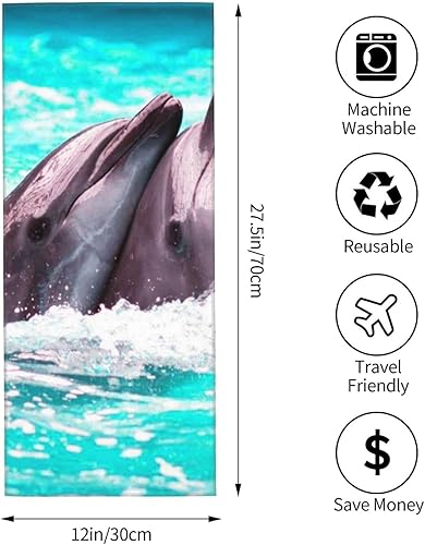 Dauphin imprimé, Serviettes de Toilette durables pour hôtel, Gant de Toilette de Voyage, Serviette de Visage 30 x 70 cm