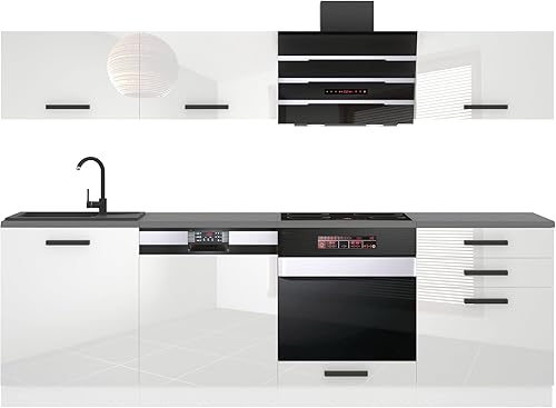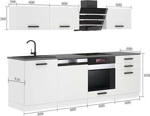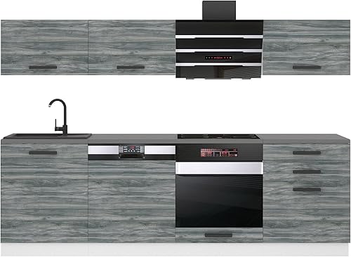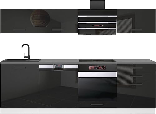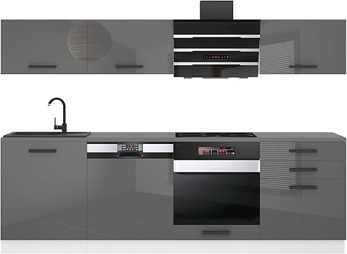 Belini Cuisine Equipee Complete Linda Muebles de Cuisine Complets - 240 cm. Cuisine Complete sans Plan de Travail, Argent très Brillant