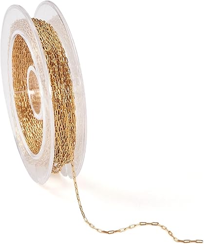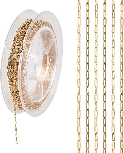 Craftdady Chaîne délicate de 5 m en acier inoxydable doré de 1 mm pour fabrication de bijoux, bracelets, bagues, colliers