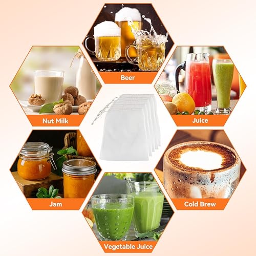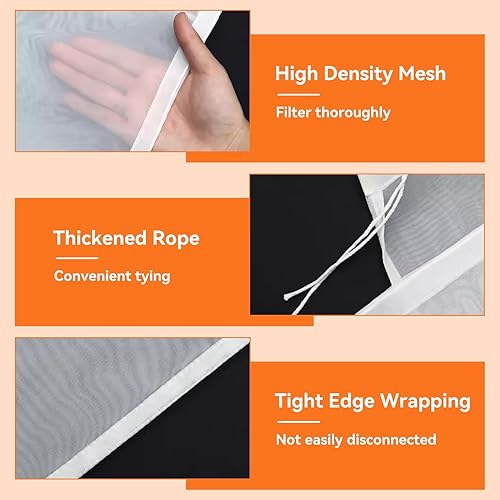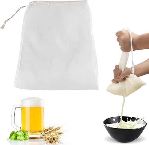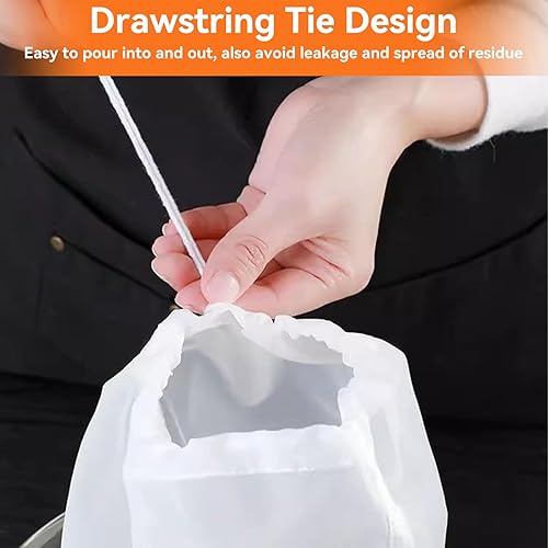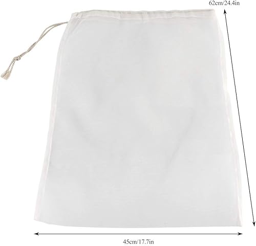 5PCS Sacs de Crépine en Maille Cordon Serrage, Réutilisable Sac à Lait Végétal Alimentaire Filtre Passoire Tissu Sac Filtrant Maille Microns pour Infusion Vin, Lait de Noix, Café, Thé(45x62cm)